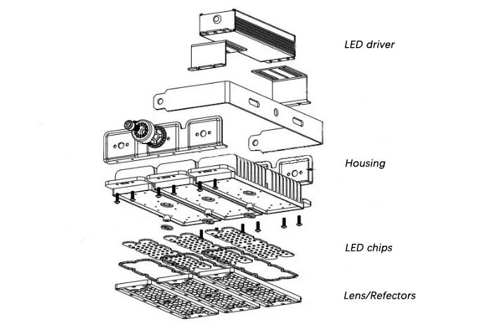 Ranging from 60W to 960W, it can basically meet all kinds of need for flood lighting. With 170lm/w efficiency, it can provides powerful illumination for bridges, sports courts, high mast and giant architectural buildings. IP67 rated and IK10 make the lights applicable in even harsh environment.